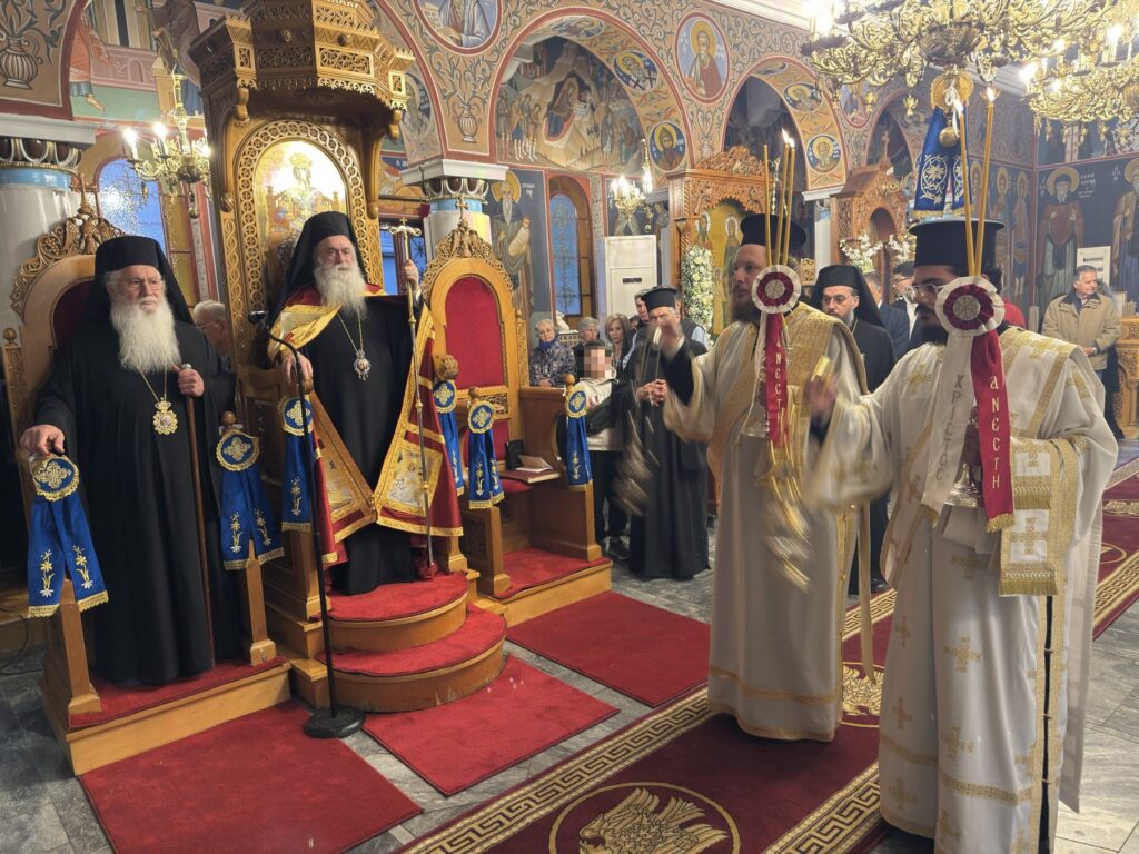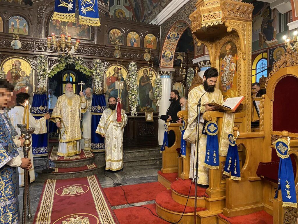 Το εσπέρας της Δευτέρας 28 Απριλίου στον Ιερό Ναό του Πολιούχου της πόλεως των Θηβών Αγίου Ιωάννη του Καλοκτένη τελέστηκε Μέγας Πανηγυρικός Εσπερινός χοροστατούντος του Θεοφιλεστάτου Επισκόπου Θεσπιών κ. Παύλου, Βοηθού Επισκόπου της Ιεράς Αρχιεπισκοπής Αθηνών, συγχοροστατούντος του Σεβασμιωτάτου Ποιμενάρχου μας κ. Γεωργίου, πλαισιούμενων από ιερείς της περιοχής και με την συμμετοχή των αρχών του τόπου και πλήθος πιστών.