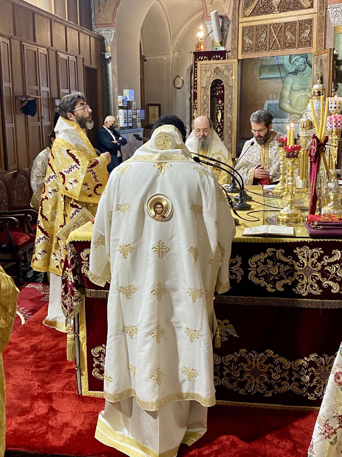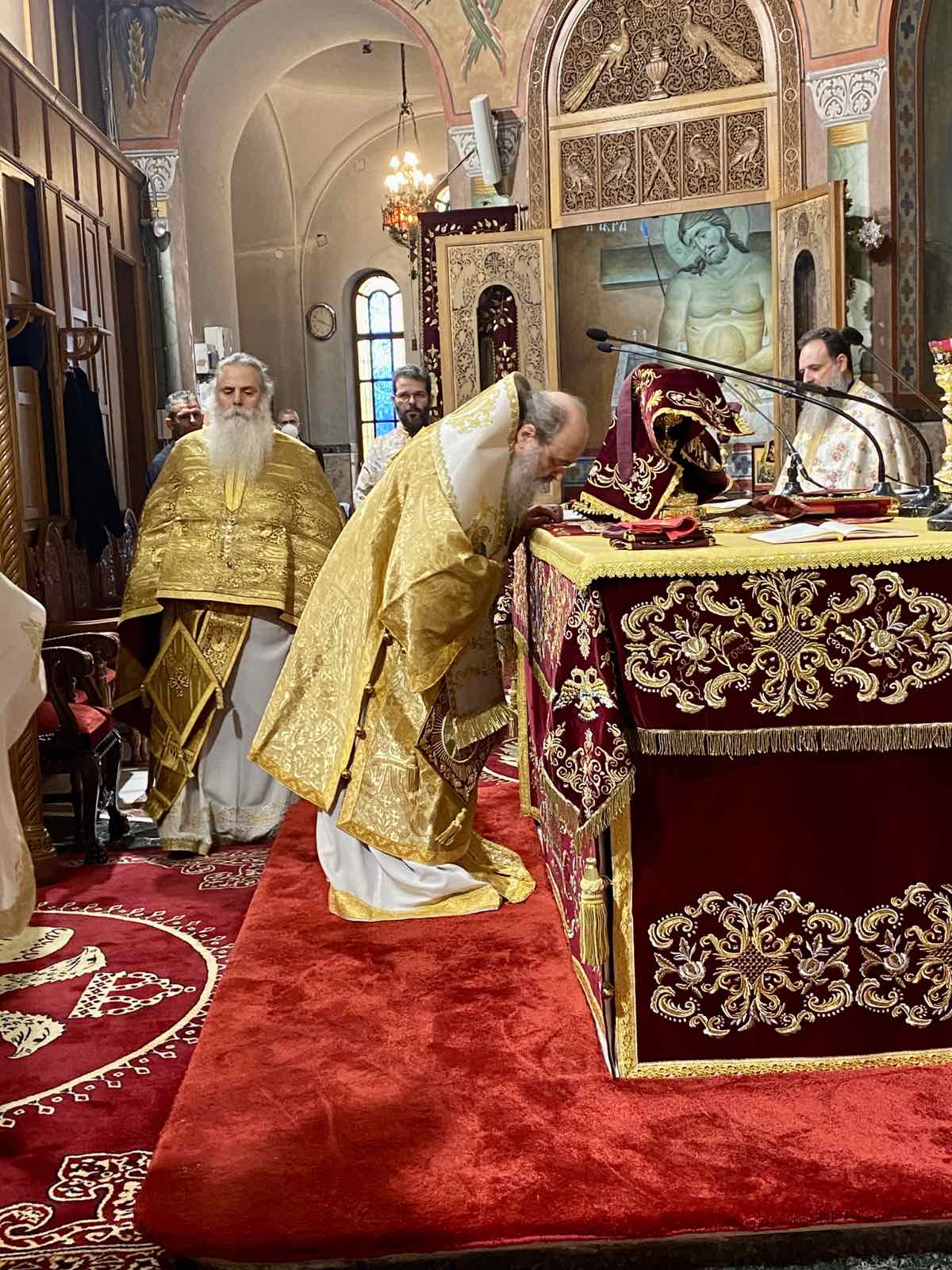 Τῆς Θείας Λειτουργίας προέστη ὁ Σεβασμιώτατος Μητροπολίτης Σαράντα Ἐκκλησιῶν, ὁ ὁποῖος ἐκήρυξε μέ βάθος θεολογικό τόν θεῖον λόγο, περί τοῦ Μεγάλου Δείπνου καί μετέφερε τάς πατρικάς εὐχάς τοῦ Παναγιωτάτου καί Οἰκουμενικοῦ Πατριάρχου κ.κ. Βαρθολομαίου, στόν Σεβασμιώτατο Μητροπολίτη Πατρῶν, στόν Ἱερό Κλῆρο καί στόν εὐσεβῆ Πατραϊκό Λαό,