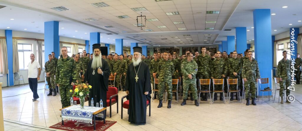 Ο Σεβασμιώτατος κ. Συμεών, ανέπτυξε εκτενή ομιλία στους 600 περίπου νεοσυλλέκτους οπλίτες της 2024 Ε’ ΕΣΣΟ του Κέντρου Εκπαίδευσης Υλικού Πολέμου με θέμα: «Η στρατιωτική πειθαρχία και η εκκλησιαστική αυτοπειθαρχία».