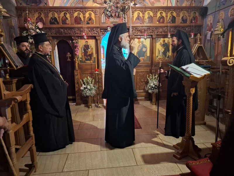 Το απόγευμα της Κυριακής, στον Εσπερινό του πανηγυρίζοντος Ιερού Μετοχίου της Ι. Μονής αγίου Γεωργίου Ηλίων, της Οσίας Ειρήνης Χρυσοβαλάντου στις Ροβιές (πάνω από τις Κατασκηνώσεις της Ι. Μητροπόλεως), ο Θεοφιλέστατος κ. Νικόδημος χοροστάτησε και κήρυξε τον θείο λόγο, επί τη μνήμη της οσίας Ειρήνης, την οποία ετίμησαν, μαζί με την αδελφότητα και πάμπολλοι προσκυνητές.
