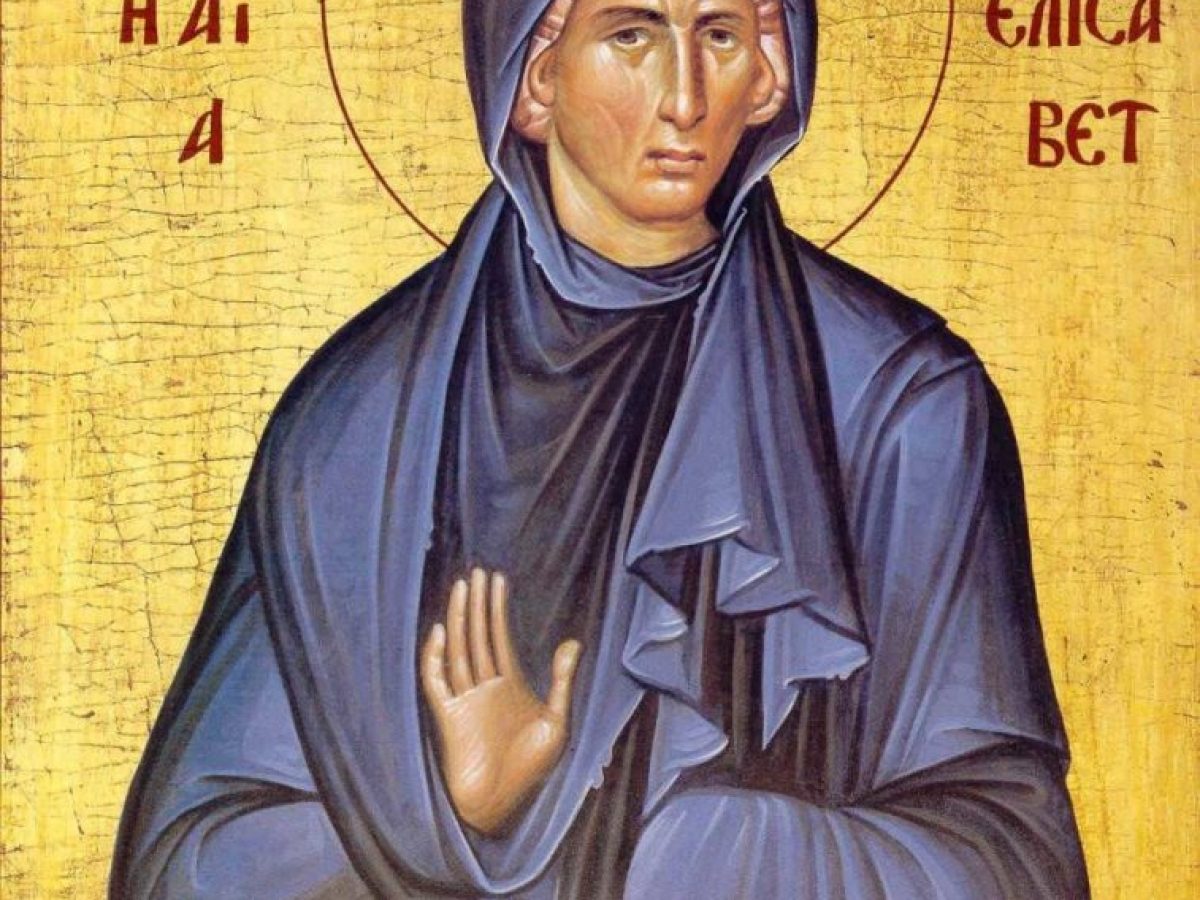 Κύλησαν από τον θάνατο της μητέρας τρία χρόνια κι ο Ευνομιανός, ο πατέρας της, έφυγε απ’ αύτή τη ζωή χαρούμενος προς τον Κύριο. Η μακαρία Ελισάβετ απόμεινε ορφανή. Όμως αμέσως δόθηκε με απόλυτη εμπιστοσύνη στον Θεό, τον πατέρα των ορφανών. Λαχτάρησε τον μοναχικό και ακτήμονα βίο. Γι’ αυτό το χρυσάφι και το ασήμι, που γι’ αυτήν είχαν αποθησαυρίσει οι γονείς της, και την άλλη της περιουσία, πού ήταν αξιόλογη, μοίρασε στους φτωχούς και με τα χέρια των φτωχών την κατέθεσε στον Θεό. Στους δούλους πάλι και στις δούλες της χάρισε την ελευθερία τους.Μέσα σε μικρό χρονικό διάστημα πέτυχε κάθε είδος αρετής και γέμισε με όλα τα χαρίσματα του Πνεύματος. Με μακροχρόνιες νηστείες δουλαγωγούσε τό σώμα της και το τυραννούσε, όπως ο μέγας Μωυσής κι ο Θεσβίτης Ηλίας. Έμενε δίχως να φάει πολλές φορές σαράντα ολόκληρες μέρες, ενώ ποτέ δεν έβαζε στο στόμα της λάδι, αλλά τρεφόταν μόνο με τον ζωντανό και επουράνιο άρτο. Κι όσο συνεχώς στολιζόταν με την ταπείνωση που εξυψώνει, και με τα μάτια της καρδιάς ατένιζε νοερά τη θεϊκή ομορφιά, τόσο δεν ήθελε ούτε και στο ελάχιστο να υψώσει τα μάτια της προς τον ουρανό, ώστε περισσότερο από τρισήμιση χρόνια είχε στραμμένο το βλέμμα της στη γη, χωρίς ούτε μια φορά να το σηκώσει προς τον ουρανό. Την ακτημοσύνη τη θεωρούσε σαν τον μεγαλύτερο πλούτο και γι’ αυτό την αγαπούσε εξαιρετικά. Είχε πάντοτε ένα μόνο χιτώνα φορώντας στολή αφθαρσίας, που με την απάθειά της είχε γι’ αυτήν υφανθεί απ’ τον Θεό. Κι όπως η ψυχή της καιγόταν από τον θεϊκό έρωτα, δεχόταν με ευκολία την παγωνιά του χειμώνα κι είχε γυμνά τα πόδια της από υποδήματα, έτσι ωραία καθώς πορευόταν προς το βραβείο της ουράνιας πρόσκλησης. Το σώμα της ποτέ δεν δέχτηκε να το πλύνει με θερμό νερό. Το διατηρούσε όμως καθαρό λούζοντάς το κάθε μέρα, όπως το λέει ο ψαλμωδός, με τις αστείρευτες πηγές των δακρύων της3. Και καθαρίζοντάς το από κάθε βρωμιά, καλλιεργούσε την ψυχή της έτσι, που νάχει όψη θεϊκή.Απ’ αυτό το γεγονός κι έπειτα γεμάτη από αισιοδοξία και σαν να πήρε κάποια σίγουρη πληροφορία ότι μπορεί με του Θεού τη δύναμη να νικήσει και τον νοητό, όπως και τον αισθητό δράκοντα, άρχισε με θάρρος να κάνει θαύματα.Αλλά και πολλές άλλες γυναίκες που πέθαιναν από την ίδια ασθένεια της αιμορραγίας έρχονταν σ’ αυτήν με ολόψυχη πίστη και τις θεράπευε σταματώντας μ’ ένα παρόμοιο τρόπο την αιμορραγία. Μαζί μ’ αυτές και κάποιος άνδρας εκ γενετής τυφλός, όταν άκουσε για τα θαύματα της οσίας, έρχεται σ’ αυτήν χειραγωγούμενος από άλλους. «Σπλαχνίσου με», έλεγε, «πιστή μαθήτρια του Θεού, και άνοιξέ μου τα μάτια για να δω το γλυκό φως και να δοξάσω με τη μεσιτεία σου τον Δημιουργό όλου του κόσμου». Λυγίζει η οσία από φιλανθρωπία στους θρήνους του και χωρίς να βραδύνει υψώνει ικετευτικά τα χέρια της στον ουρανό, παίρνει λάδι του αγίου, αλείφει τα μάτια του τυφλού και σε επτά ημέρες τον κάνει να βλέπει καθαρώτατα, ενώ εκείνος μεγαλόφωνα δόξαζε τον Θεό.Ενώ προσευχόταν, παρουσιάζεται κάποια γυναίκα σαν νάταν από εκείνες τις ξακουστές κι αρχόντισσες της πόλης. Την αγκαλιάζει με αγάπη αληθινή, την ασπάζεται και της λέει. «Καλώς ήρθες πολυαγαπημένη μητέρα». Και η οσία της λέει. «Ποια είμαι εγώ κυρία μου, η άσημη ξένη, που έτσι με τόση χαρά μ’ αγκάλιασες και με φίλησες, εμένα που ποτέ δεν με έχεις δει;». Εκείνη πάλι είπε. «Πριν συλληφθείς στην κοιλιά της μητέρας σου, κατοικώντας εδώ σε γνωρίζω. Αν θ