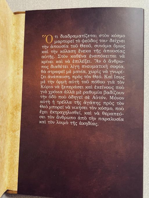 «Πολέμησαν μέ πίστη καί μέ τόλμη ὑπό τήν Σκέπη τῆς Παναγίας, νίκησαν δύο αὐτοκρατορίες. Δέν ἒσκυψαν τό κεφάλι, δέν συμβιβάστηκαν. Τό «MOΛΩΝ ΛΑΒΕ» καί τό «ΟΧΙ» ἦταν ἡ ἀγωνιστική καί νικητήρια ἰαχή τους. Εἶδαν ὀφθαλμοφανῶς τήν Παναγία νά τούς σκέπῃ, νά τούς ἐμψυχώνῃ καί νά τούς ὁδηγῇ. Κρατοῦσαν στόν κόρφο τους τ’ἁγιασμένα φυλαχτά τῆς μάνας τους, μαζί μέ τήν εὐχή της.»