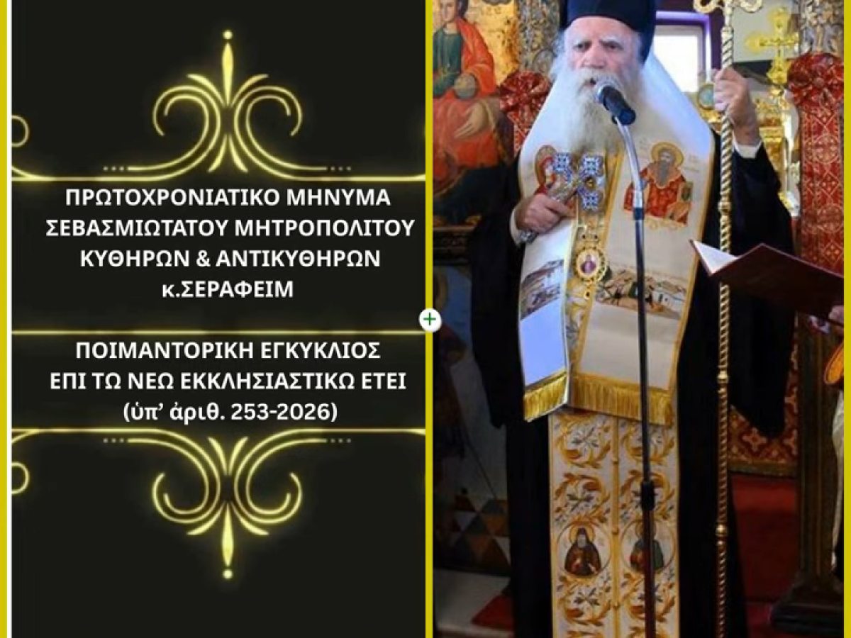 Εὐλογημένο, εἰρηνικό, χαριτοφόρο, καρποφόρο καί σωτήριο ἄς εἶναι τό Νέον ἔτος 2026!