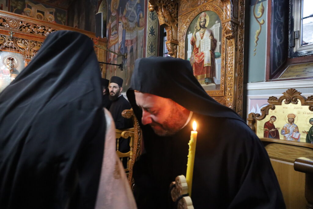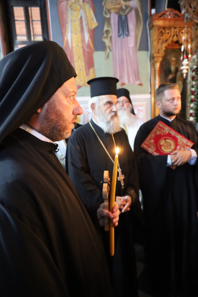 Στον Αρχιερατικό Εσπερινό χοροστάτησε ο Σεβ. Μητροπολίτης Σερρών και Νιγρίτης κ. Θεολόγος, ο οποίος και ετέλεσε την μοναχική κουρά του π. Θεοδοσίου. Συμπροσευχήθησαν επίσης μεταξύ άλλων και ο Καθηγούμενος της ιεράς Μονής, πανοσιολ. Αρχιμανδρίτης π. Γαβριήλ Παλιούρας, Κληρικοί της Ιεράς Μητροπόλεως, αδελφοί, συγγενείς, αλλά και πολλοί ευλαβείς προσκυνητές.