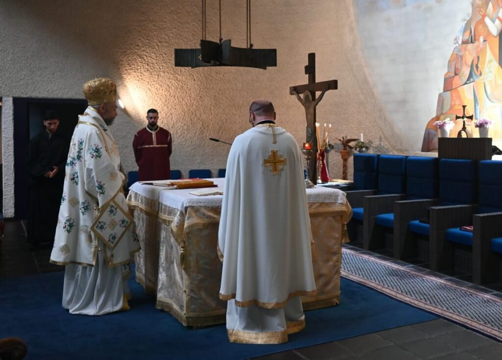 Προτροπῇ τοῦ ἐν θερινῇ ἀδείᾳ διατελοῦντος Σεβ. Μητροπολίτου Ἑλβετίας κ. Μαξίμου, διαδόχου τοῦ ἀειμνήστου Ἱεράρχου στήν ποιμαντορία τῆς Ἱερᾶς Μητροοπόλεως Ἑλβετίας καί στήν Προϊσταμενία τοῦ Ὀρθοδόξου Κέντρου, τῆς Θείας Λειτουργίας προέστη ὁ Βοηθός αὐτοῦ, Θεοφιλ. Ἐπίσκοπος Τυάνων κ. Φανούριος, συλλειτουργοῦντος καί τοῦ Πανοσιολ. Ἀρχιμανδρίτου κ. Γαβριήλ Baratashvili.