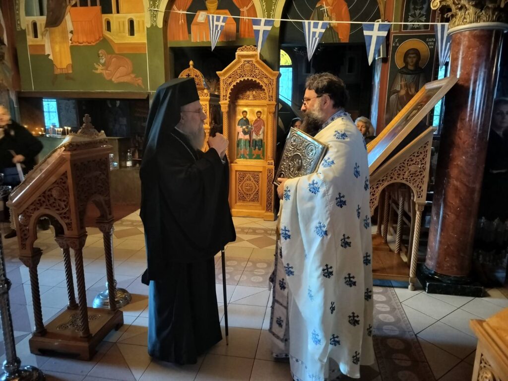 Τὴν ἐφέστιο εἰκόνα τῆς ἁγίας Σκέπης, στὴν ὁμώνυμη ἐκκλησία τοῦ Παπάγου, ὅπου μετείχαν στὸν ἑσπερινὸ τῆς πανηγύρεως.Την επομένη 28η Οκτωβρίου 2024, ιερούργησαν και τέλεσαν την Δοξολογία για την εθνική επέτειο του 1940, στο ναό της αγίας Μαρίνης, οι πατέρες Ιωάννης και Γεώργιος, συμπροσευχομένου του αρχιμανδρίτου Σεραφείμ, ο οποίος τέλεσε την Δοξολογία στο ναό της Κοιμήσεως Θεοτόκου Ηλιουπόλεως ενώπιον του Δημάρχου και λοιπών αρχών της πόλεως καθώς και το τρισάγιο στο ηρώο της πόλεως. Μετά την Θεία Λειτουργία ο π. Γεώργιος μετέβη στο μνημείο της πλατείας Ανεξαρτησίας και τέλεσε επιμνημόσυνη δέηση, ενώ στεφάνο εκ μέρους της εκκλησιαστικής κοινότητος κατέθεσε ο παις Παναγιώτης Πυλιώτης. Ο αρχιμανδρίτης Ευσέβιος Μεάντζια υπήρξε συλλειτουργός του επισκόπου Ευρίπου Χρυσοστόμου στο ναό αγίας Σκέπης Παπάγου, εκπροσωπώντας την κοινότητα της αγίας Μαρίνης στην εκεί εορτή της εκεί κοινότητος, της οποίας προεδρεύει ο πνευματικός του αδελφός και κάποτε εφημέριος στο ναό μας αρχιμανδρίτης Δαμασκηνός Φυλακτός, ενώ ο πρωτοπρεσβύτερος Λάμπρος Ξεσφύγγης λειτούργησε στον ναό Αναστάσεως, Κοιμητηρίου Ηλιουπόλεως.