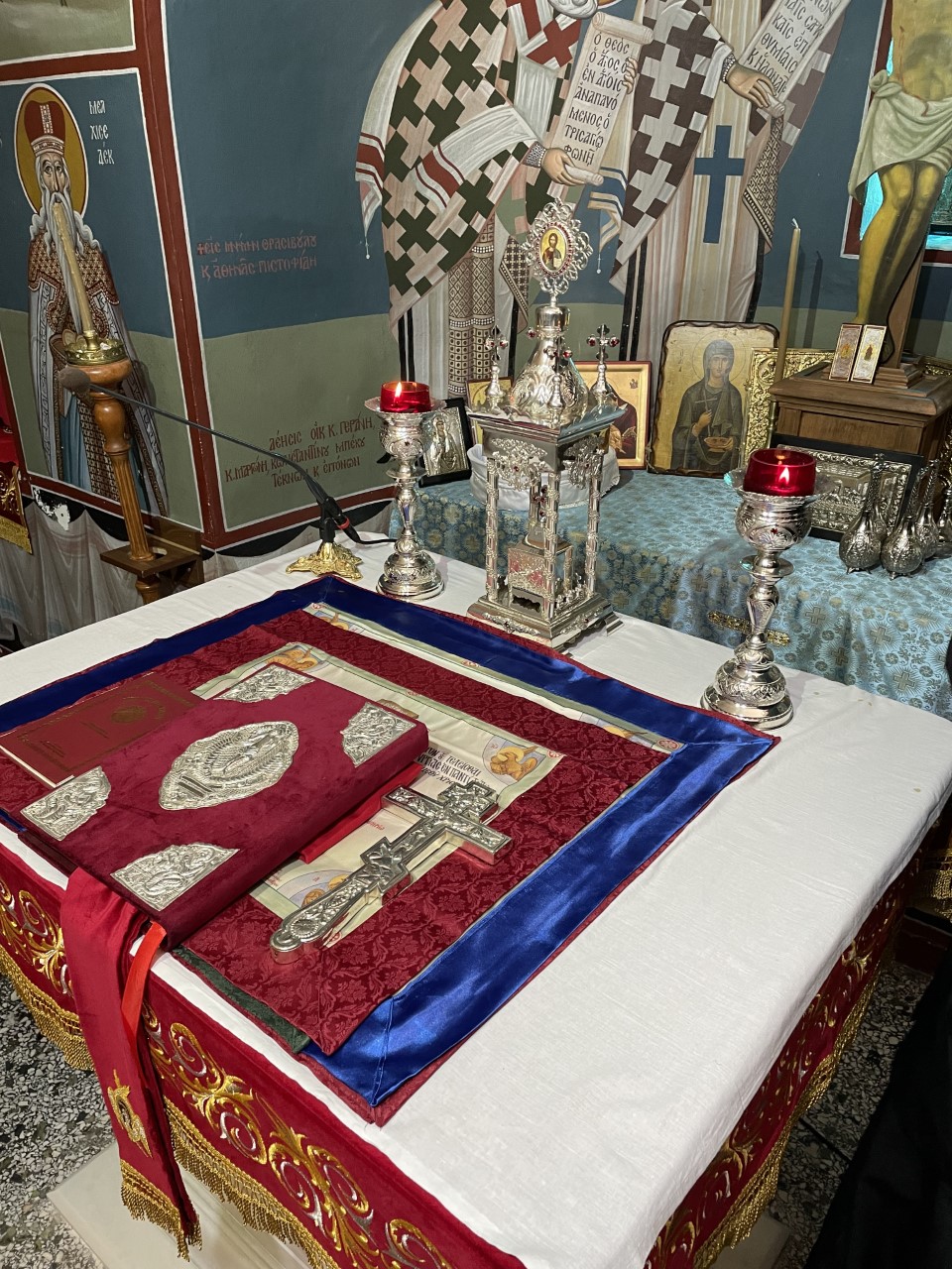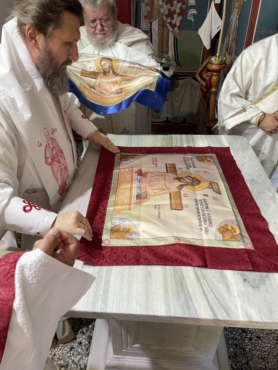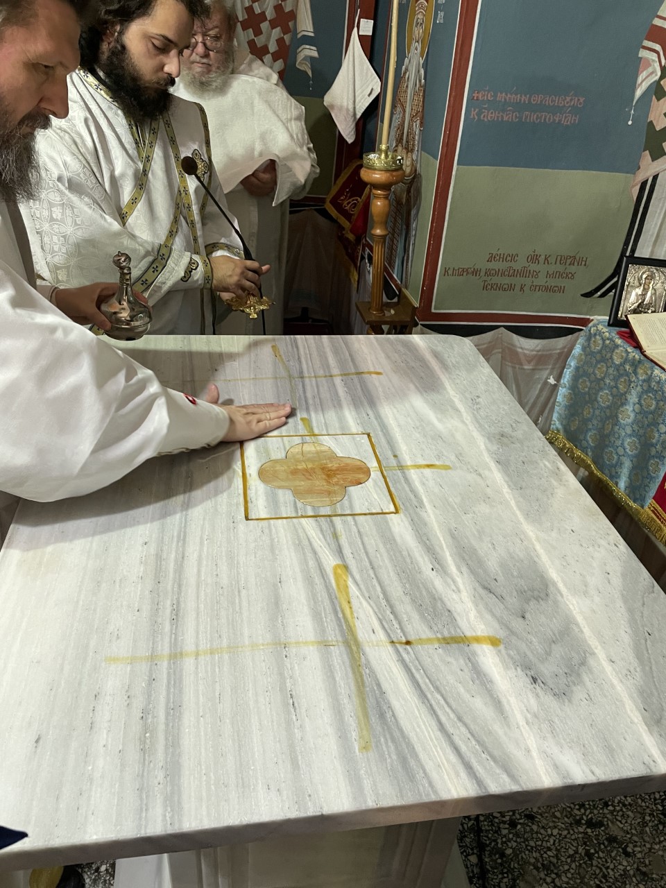 Τό ἤδη πρό πολλοῦ ἐγκαινιασθέν μέρος (κίονας) τῆς παλαιᾶς Ἁγίας Τραπέζης, ὅπου εὑρίσκονται τά μαρτυρικά Ἅγια Λείψανα, καλύφθηκε ἀπό τή νέα καλλιμάρμαρη Ἁγία Τράπεζα, ἡ ὁποία ἐμυρώθη καί καθηγιάσθη ὑπό τοῦ Σεβασμιωτάτου.