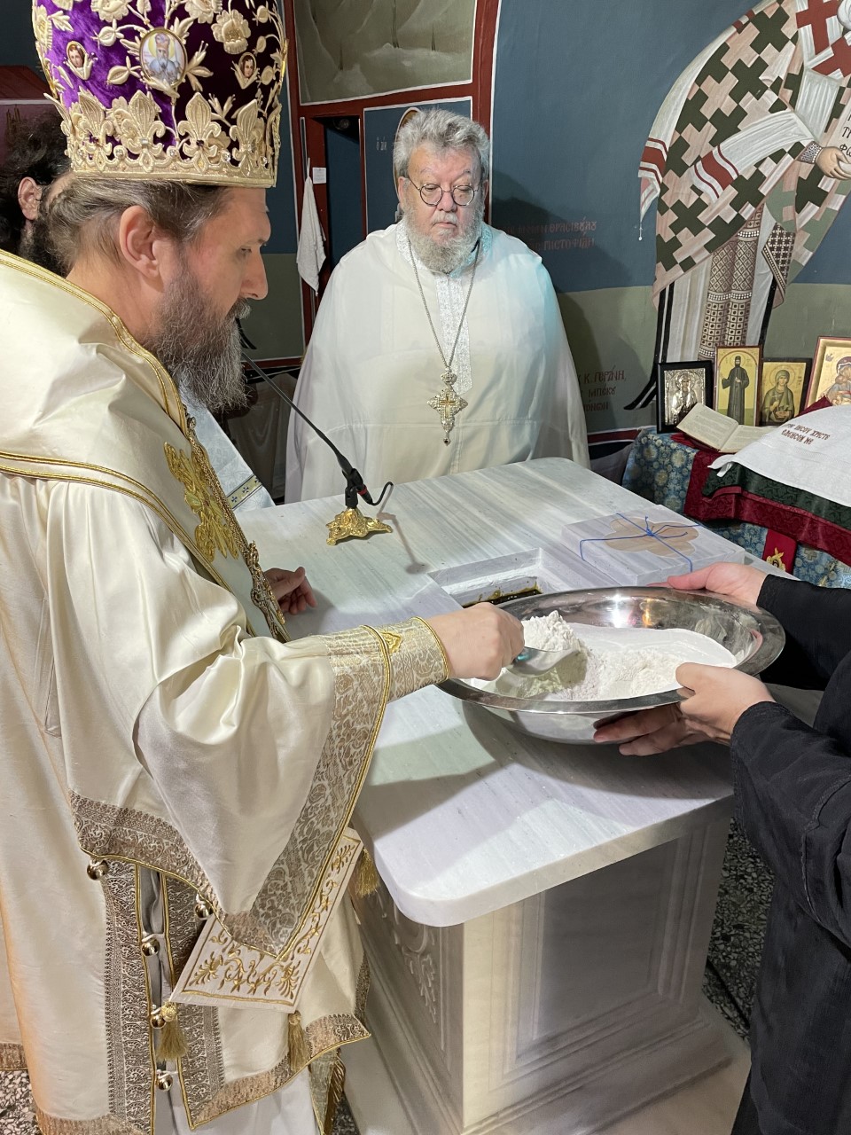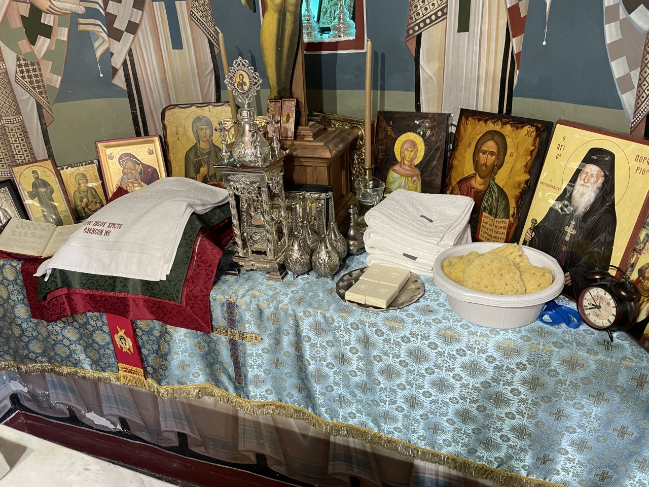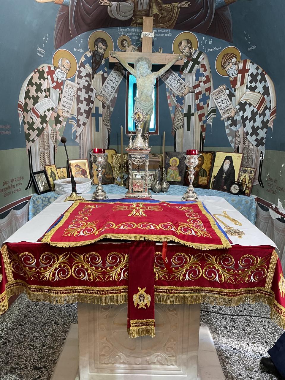Τό ἤδη πρό πολλοῦ ἐγκαινιασθέν μέρος (κίονας) τῆς παλαιᾶς Ἁγίας Τραπέζης, ὅπου εὑρίσκονται τά μαρτυρικά Ἅγια Λείψανα, καλύφθηκε ἀπό τή νέα καλλιμάρμαρη Ἁγία Τράπεζα, ἡ ὁποία ἐμυρώθη καί καθηγιάσθη ὑπό τοῦ Σεβασμιωτάτου.