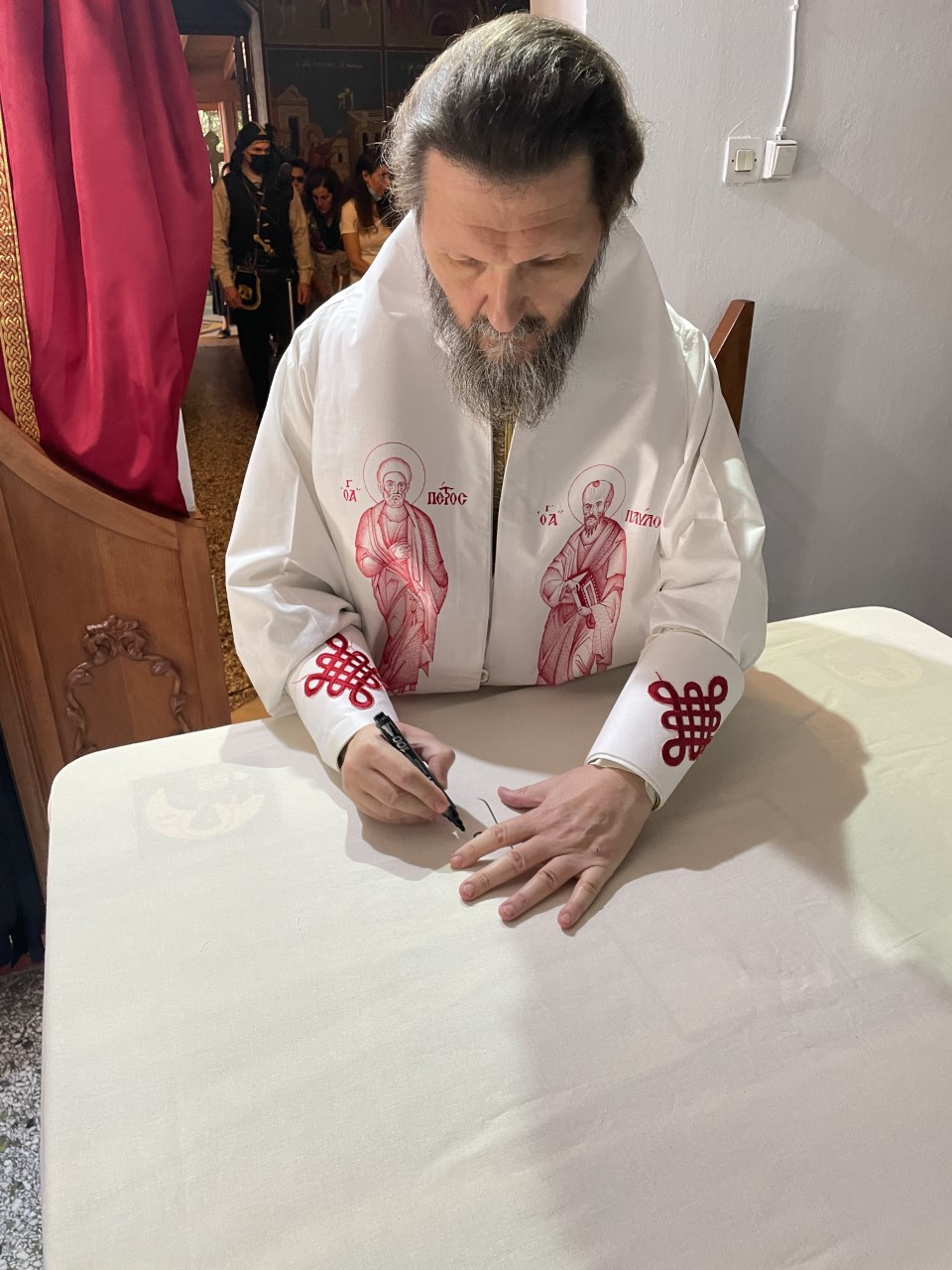 Πρό τοῦ πέρατος τῆς Θείας Λειτουργίας ὁ Μητροπολίτης μας συνεχάρη τόν Προϊστάμενο τοῦ Ἱεροῦ Ναοῦ, Πρωτοπρ. π. Ἀλέξιο Φωτόπουλο καί τό περί αὐτόν Ἐκκλησιαστικό Συμβούλιο, οἱ ὁποῖοι μέ ἔνθεο ζῆλο διακονοῦν τήν μικρή, ἀλλά εὐλογημένη ἐνορία τῆς Ἁγίας Παρασκευῆς Ἑλληνικοῦ καί καταβάλλουν φιλότιμες προσπάθειες γιά τόν εὐπρεπισμό τοῦ Ἱεροῦ Ναοῦ.