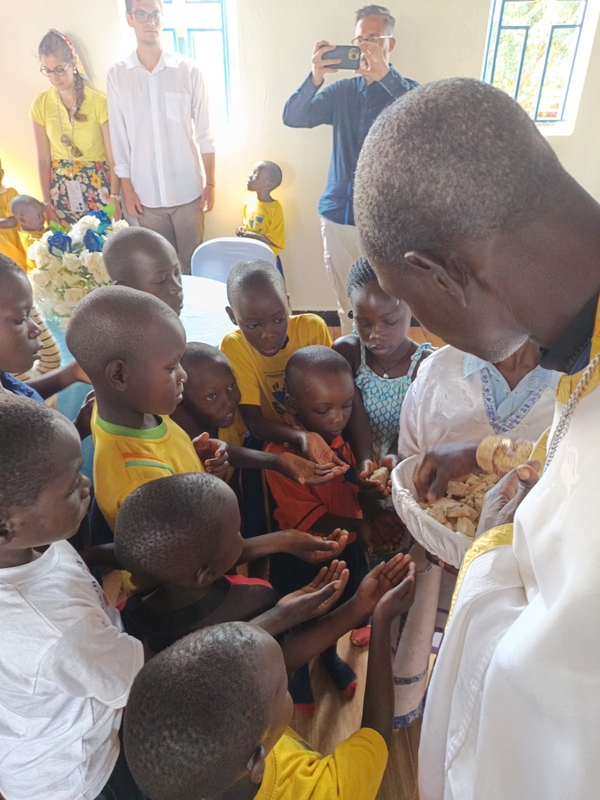 Μετά από πολύωρο ταξίδι μαζί με τον επιχώριο Επίσκοπο κ. Σιλβέστρο, αφίχθη στην περιοχή Βuyende, όπου βρίσκεται ο Ιερός Ναός της Μεταμορφώσεως. Δίπλα σ’ αυτόν λειτουργεί το σχολείο των Λαρισαίων, γνωστό ως “STERGIOULIS ORTHODOX SCHOOL CHILDREN CENTER “. Στον προαύλιο χώρο του Ναού, οι μαθητές του σχολείου υποδέχθηκαν με ενθουσιασμό και τραγούδια τον Επίσκοπο με τη συνοδεία του. Ακολούθησε ξενάγηση στους χώρους του σχολείου, όπου ο Διευθυντής του σχολείου ευχαρίστησε όλους τους δωρητές από την Ελλάδα στο προσωπο των μελών του κλιμακίου.