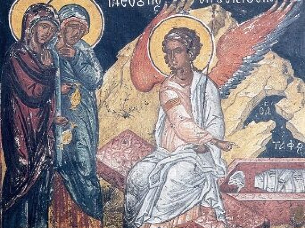 Οι Μυροφόρες «εἰσελθοῦσαι εἰς τὸ μνημεῖον εἶδον νεανίσκον καθήμενον ἐν