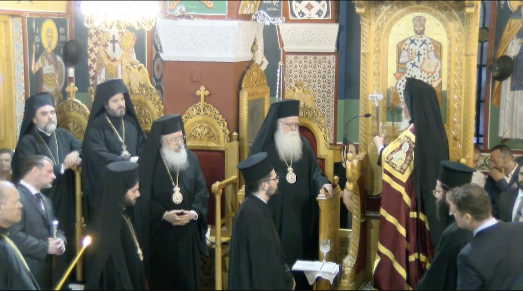 Ἐπί δέ τούτοις τόν Κύριον εὐλογοῦντες, μετά δέους καί ἀφάτου χαρᾶς διακηρύσσομεν:
